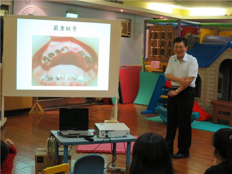 『視力維護』及『口腔保健』皆為幼兒成長階段重要課題。為了讓家長有更充足相關知識,本校特聘造橋鄉衛生所牙醫〝賴辛癸〞賴醫師,親臨本校為家長們解說。