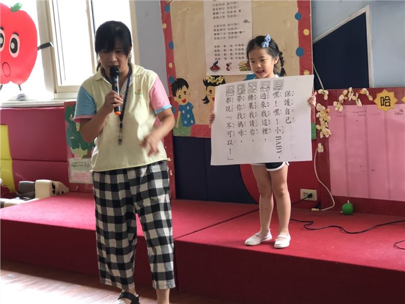 為提升幼兒自我保護觀念,今日朝會中,宣導孩童自我保護的方法,希望落實於生活中,共同建立幼兒安全的防護網。