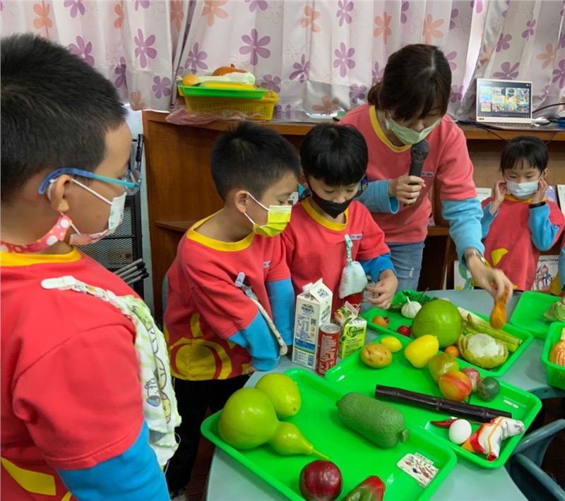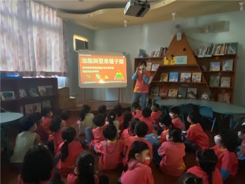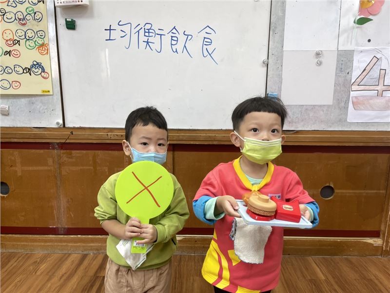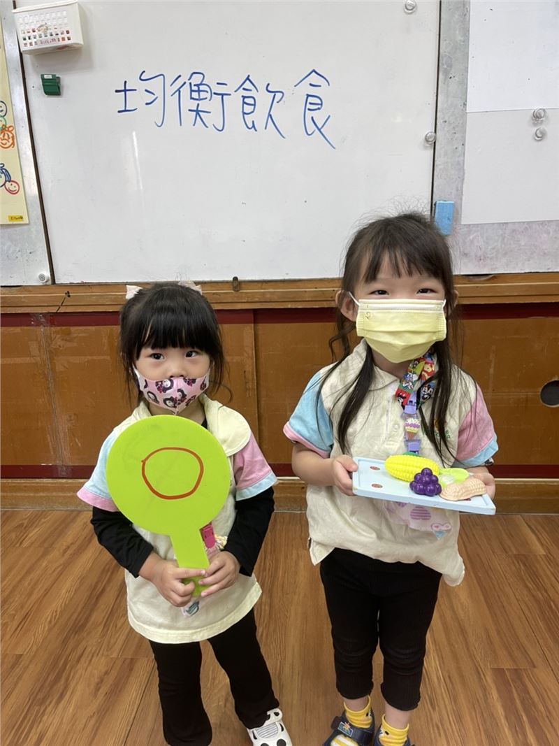 朝會活動引領全園孩子認識六大類食物的健康概念,從食物金字塔習知各種食物所需的營養價值,了解各類食物帶給人體的好處!