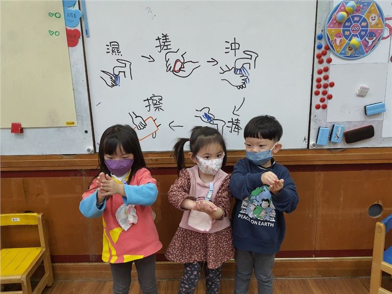 讓孩子們瞭解如何進行手部清潔及洗手時機的概念,回家請與孩子一同分享討論,建立正確的觀念。